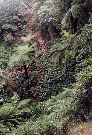 Ein Weg führt durchs Inferno, ein kleines Tal in dschungelähnlichem