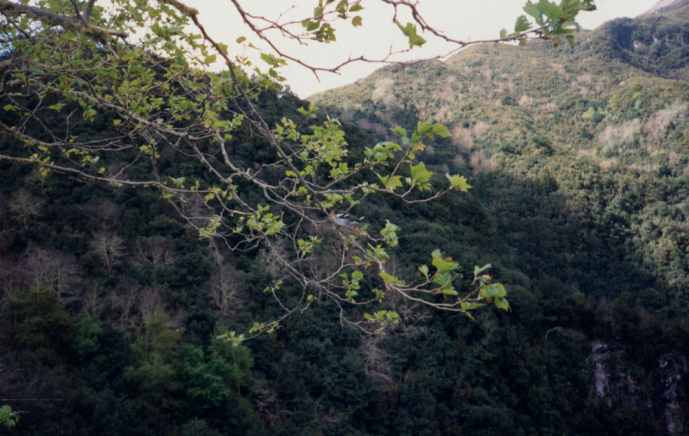 Felsen durch den man auf die andere Seite des Bergrückens gelangt, in das Tal des Ribeira